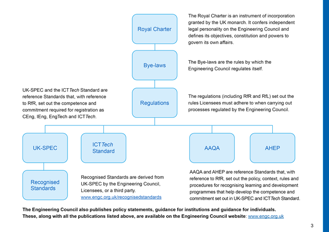 UK-SPEC describes the standards for professional registration as a CEng, IEng or EngTech.