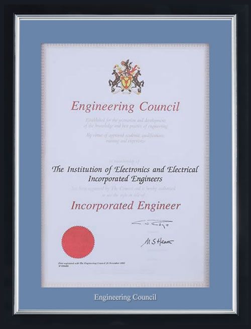 The Engineering Council has commissioned The Professional Framing Company to provide specially designed presentation frames to ensure your certificate is displayed to its best effect.