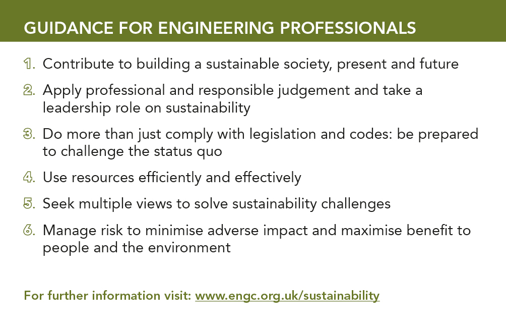 Professionally registered engineers and technicians are required to carry out their work in a way that contributes to sustainable development