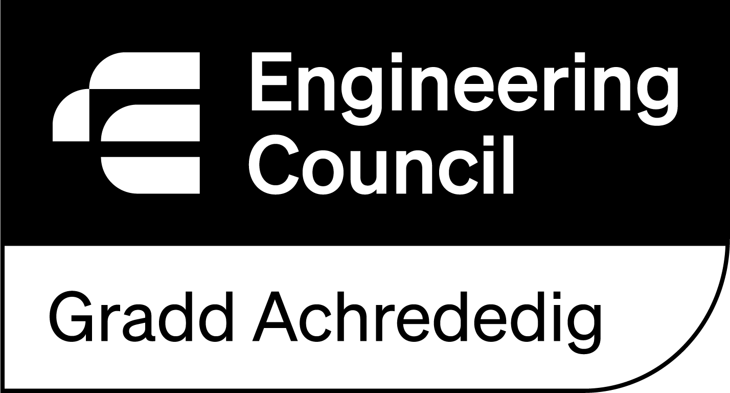 Achredwyd y radd hon gan (name of relevant professional engineering institution(s)) dan drwydded gan reolydd y Deyrnas Unedig, yr Engineering Council. Mae achrediad yn nod sicrwydd fod y radd yn cwrdd â’r safonau a nodwyd gan yr Engineering Council yn yr UK Standard for Professional Engineering Competence and Commitment (UK-SPEC). Bydd gradd achrededig yn rhoi rhywfaint neu’r cyfan o’r wybodaeth, y ddealltwriaeth a’r sgiliau creiddiol sydd eu hangen i gofrestru maes o law fel Incorporated Engineer (IEng) neu Chartered Engineer (CEng). Mae rhai cyflogwyr yn dewis recriwtio rhai sydd â graddau achrededig, ac mae’n debygol y bydd gwledydd eraill sydd wedi llofnodi cytundebau rhyngwladol yn cydnabod graddau achrededig.